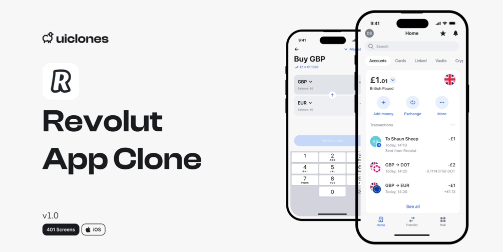 You get a fully editable clone of Revolut's iOS app